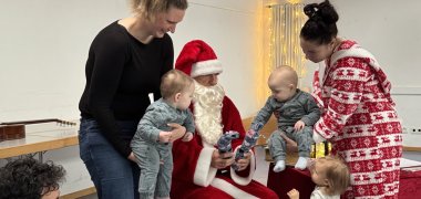 Etwas verspätet am 10. Dezember kam der Nikolaus (Jugendpfleger Matthias Hirt) in den sehr gut besuchten Drop In(klusive) Treff im Familienzentrum Pfungstadt. Bereits einige Tage vorher wurde für jedes Kind eine Socke mit Namen abgegeben. Die meisten der Kinder sahen den Mann mit dem roten Mantel und dem weißen Bart zum ersten Mal. Es wurden Nikolaus- und Adventslieder gemeinsam gesungen und anschließen bekamen alle, auch die Mütter, Papas oder Omas, etwas „Süßes“ und ein kleines Geschenk.