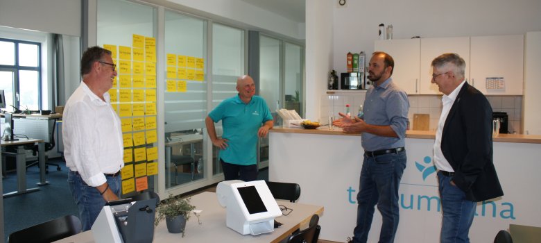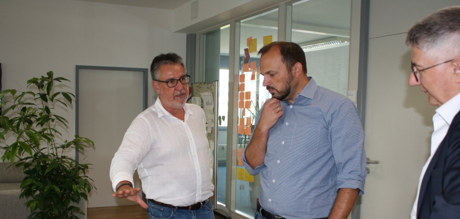 Bürgermeister Patrick Koch und Thomas Rädchen (Geschäftsführer SEG) besuchten das Pfungstädter Unternehmen am 18.08. und ließen sich von Gerd Meyer-Philippi das neue System erklären.