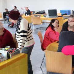 Für Kaffee und selbst gebackenen Kuchen sorgten Ute und Susanne, die im Kinder- und Jugendraum alle Hände voll zu tun hatten. Die Annahme der Reparaturaufträge und den reibungslosen Ablauf koordinierte Gabi.