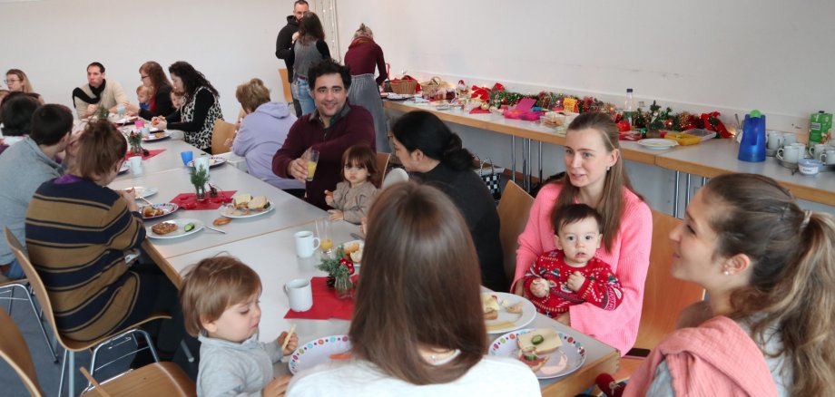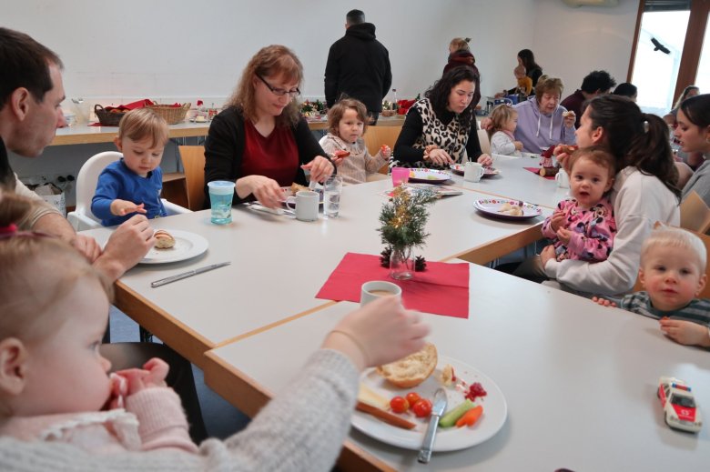Gemeinsam wurde beim letzten Treffen dieses Jahrs ein großes Frühstücks-Buffet veranstaltet. Jeder hatte eine Kleinigkeit mitgebracht. Die pädagogische Mitarbeiterin Karoline Lindner - Dittmann hatte einige Aktivitäten und auch festlich geschmückte Tische vorbereitet. So gab es Fingerspiele und Weihnachtslieder, die von Jugendpfleger Matthias Hirt auf der Gitarre begleitet wurden. Danach ging es an das großzügige Buffet. Außerdem bestand wie immer die Möglichkeit zu malen und spielen und sich zu unterhalten.
