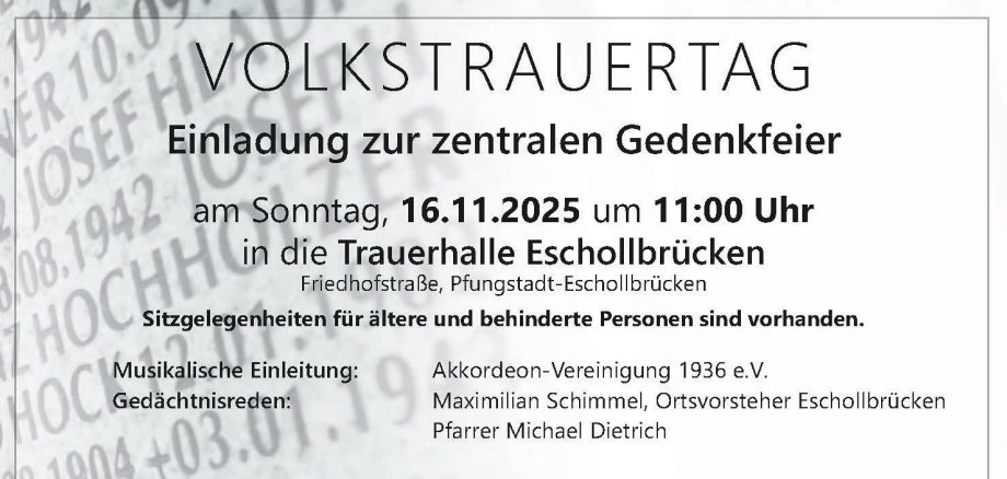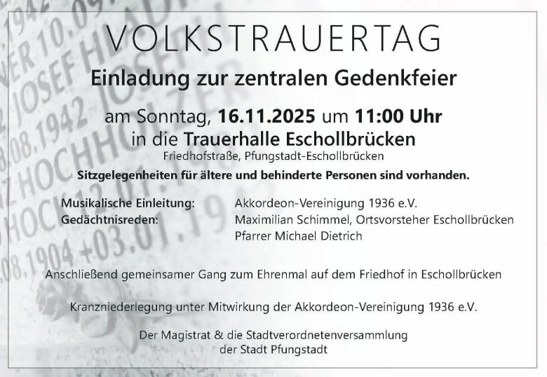 Einladung zur zentralen Gedenkfeier in Eschollbrücken