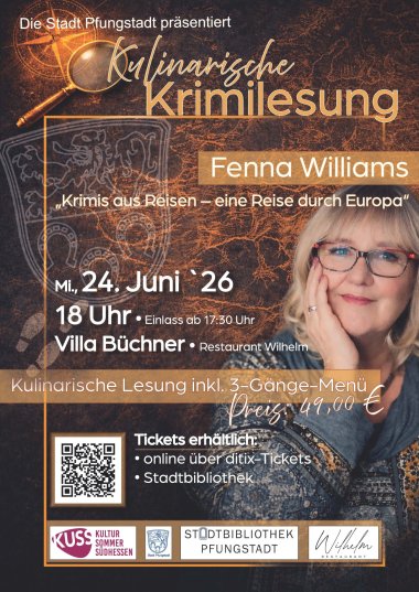 Freuen Sie sich auf einen genussvollen Abend, bei dem Spannung und Kulinarik aufeinandertreffen. Autorin Fenna Williams liest aus ihrem Krimi, begleitet von einem exklusiven 3-Gänge-Menü in besonderem Ambiente.
