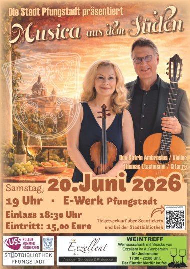 Erleben Sie einen stimmungsvollen Konzertabend mit Violine und Gitarre. Mediterrane Klänge und leidenschaftliche Rhythmen entführen Sie musikalisch in den Süden.
