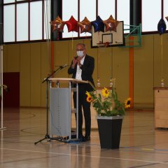 Der hessische Wirtschaftsminister Tarek Al-Wazir war sichtlich erfreut, an dieser Veranstaltung teilnehmen zu können. In seiner Rede verwies er auf den umfassenden bildungs- und Erziehungsauftrag, den Schulen heute zu bewältigen haben, um die Kinder und Jugendlichen bestmöglich vorbereitet in das Ausbildungs- und Berufsleben zu entlassen.